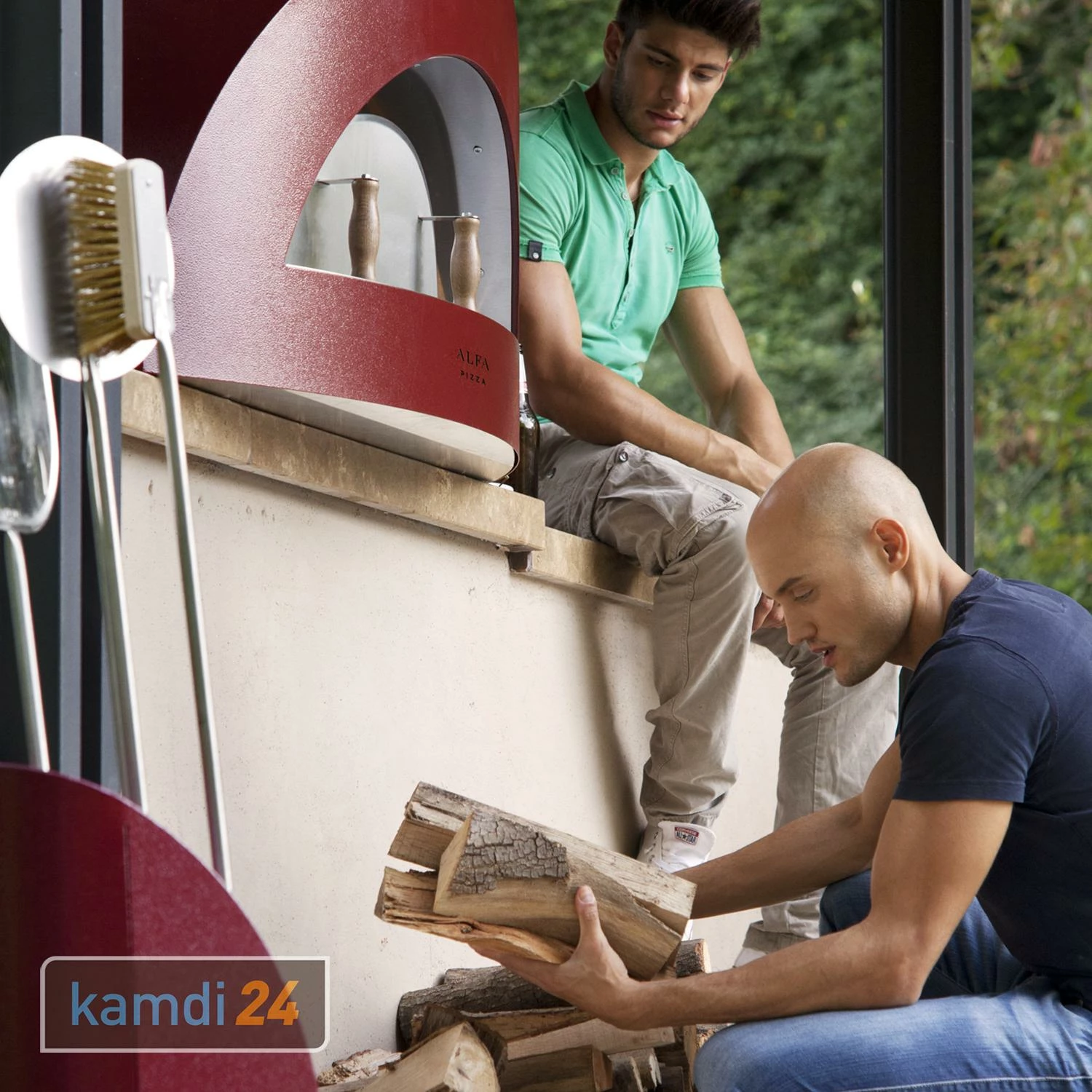 Zur Reinigung des Garraumbodens setzen Sie die Bürste ein, die mit Messingborsten ausgestattet ist. Sie eignet sich besonders gut für die Reinigung von Schamotte und erhält die Backeigenschaften der Bodenverkleidung. Mit der Bürste kehren Sie auch Ascherückstände von der Backfläche, bevor Sie die Pizza in den Ofen schieben.