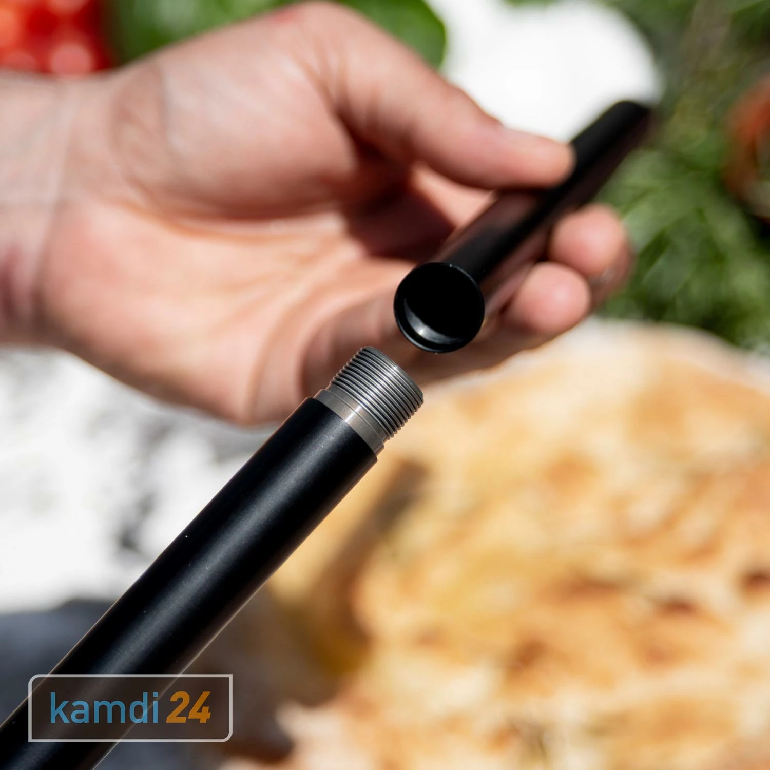 Das ist besonders leicht und durch die hochwertige Verarbeitung sehr gut nutzbar. Für genügend Abstand zwischen dem heißen Pizzaofen und Ihren Händen sorgen die bis zu 145 cm langen Griffe.