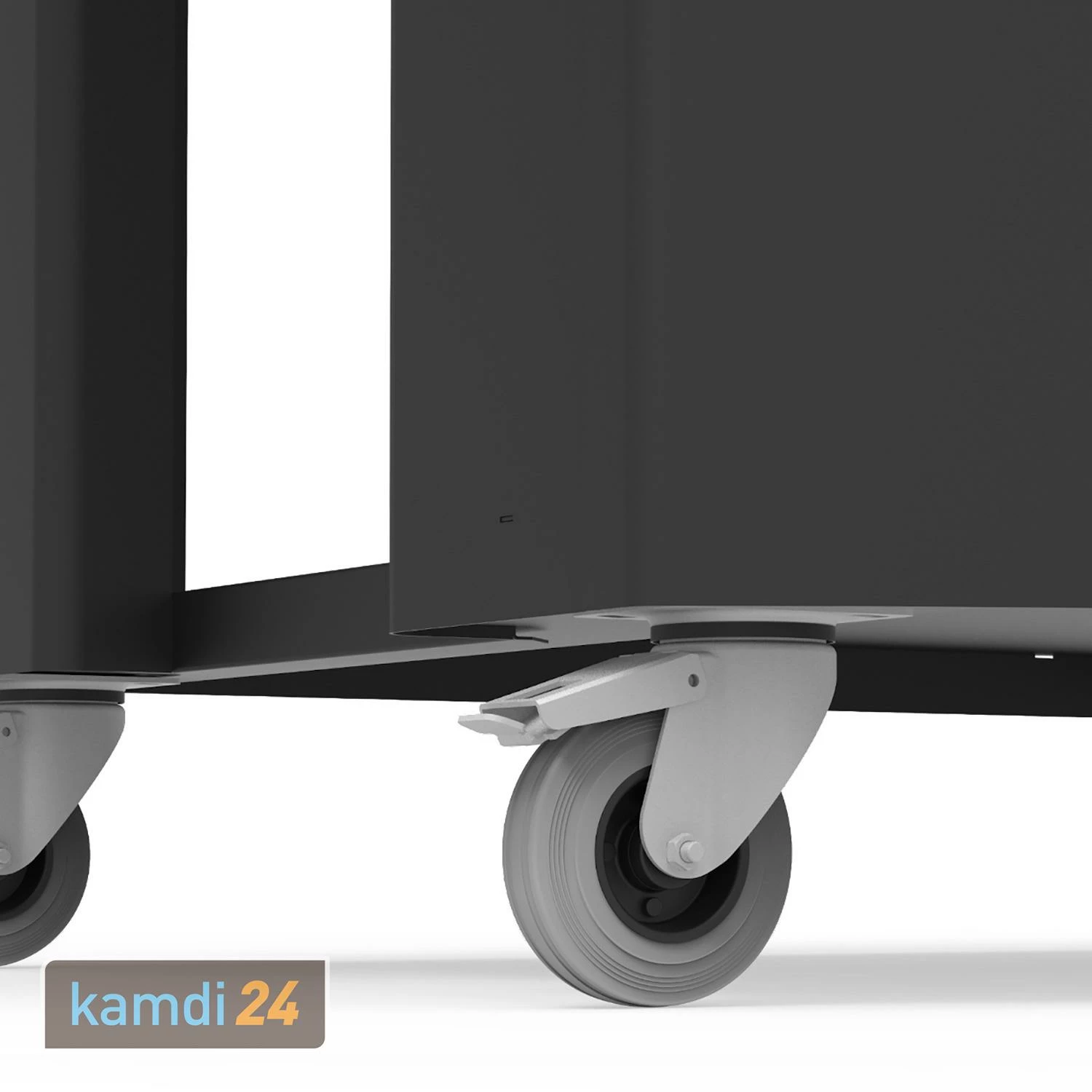 Direkt unter der Brennkammer befindet sich ein für die gebackenen Pizzen oder das Geschirr. Zusätzlich verfügt der über , die freistehend und arretierbar sind – das Verschieben des an beliebigen Standorten ist damit problemlos möglich.