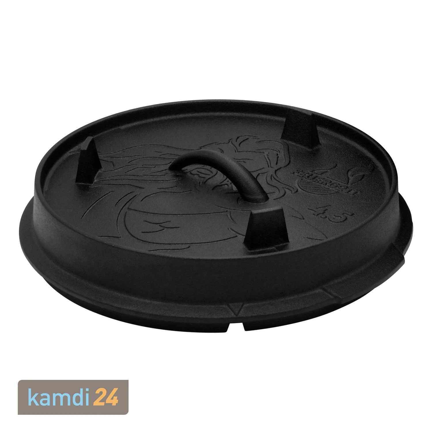 Im Deckel des Dutch Ovens können Sie braten oder grillen. Dank der drei Beine fungiert der Deckel außerdem als praktische Servierplatte.