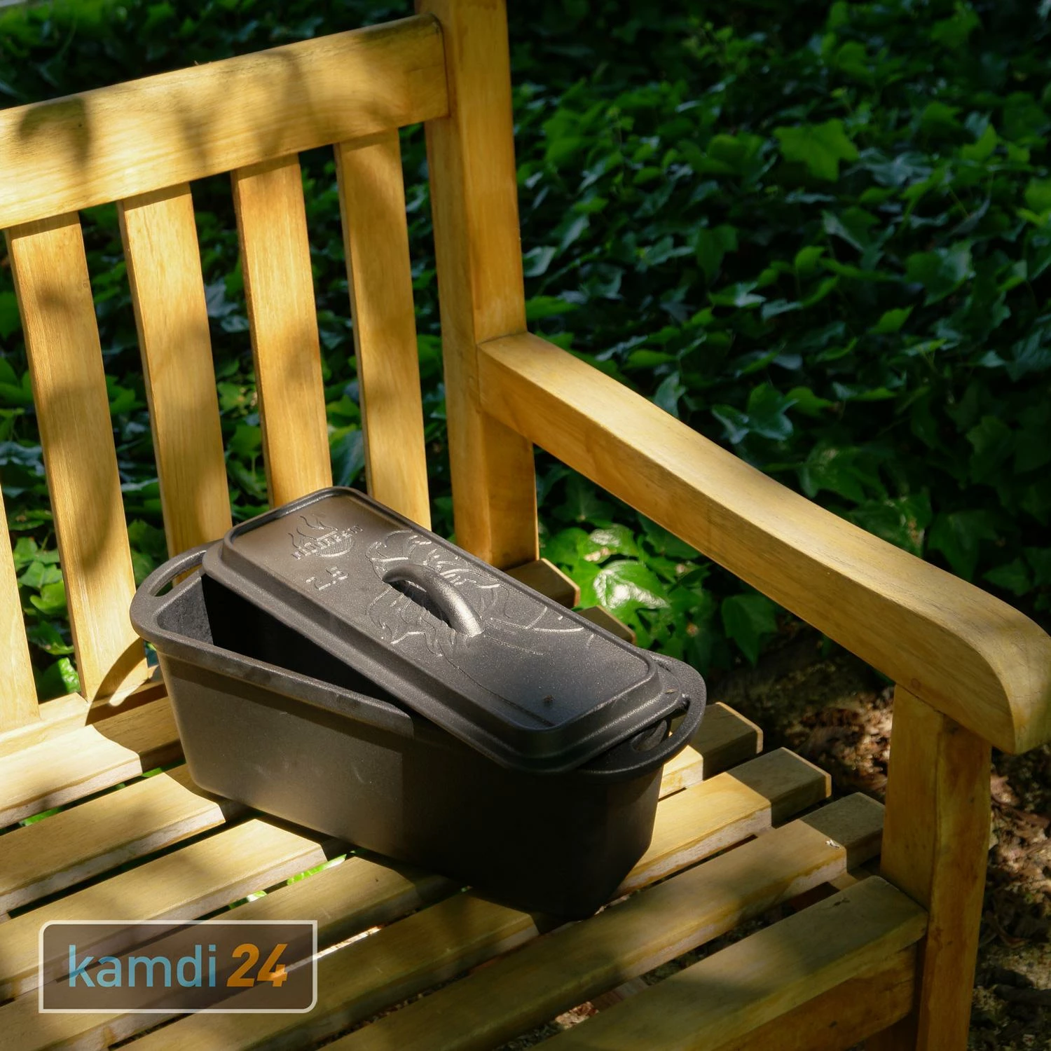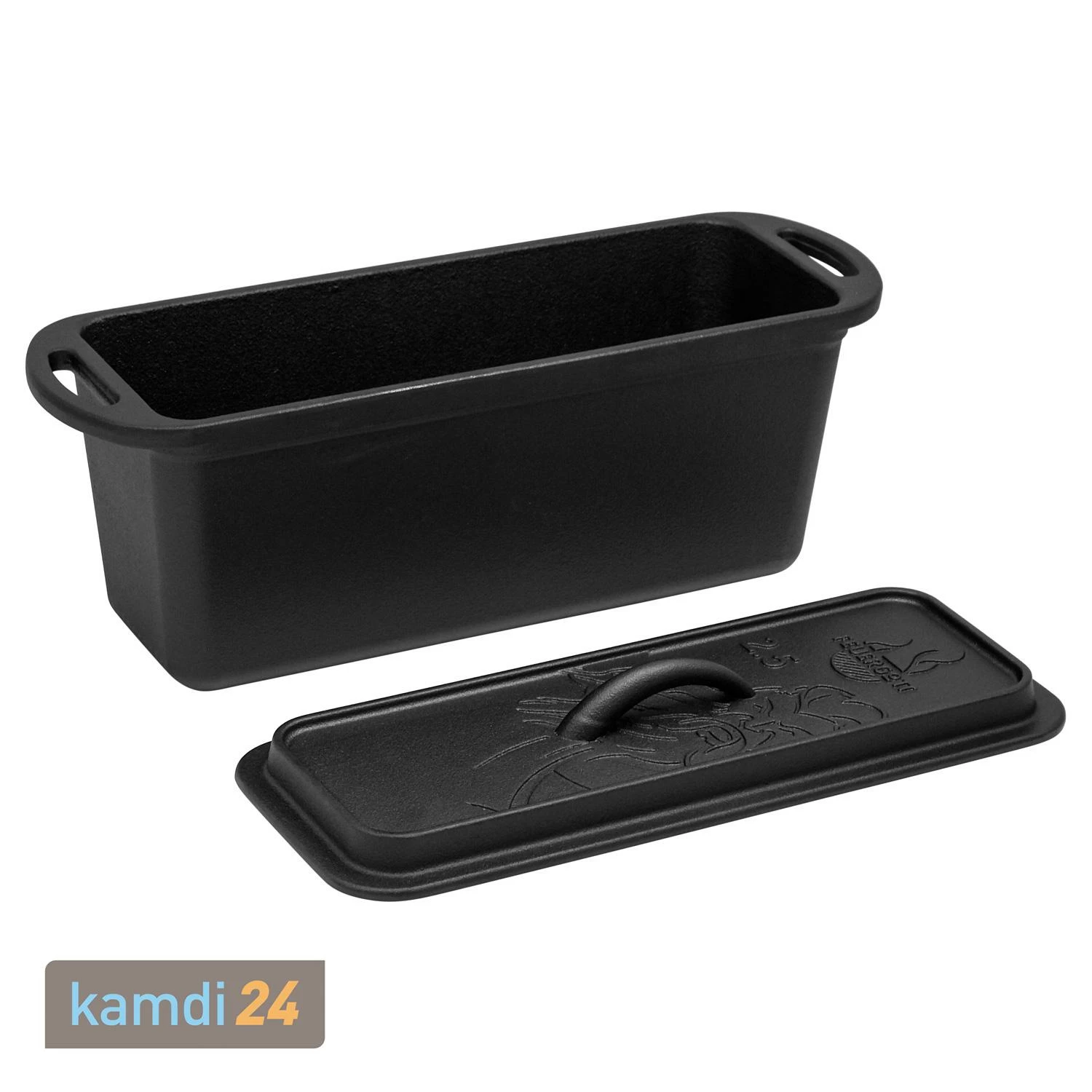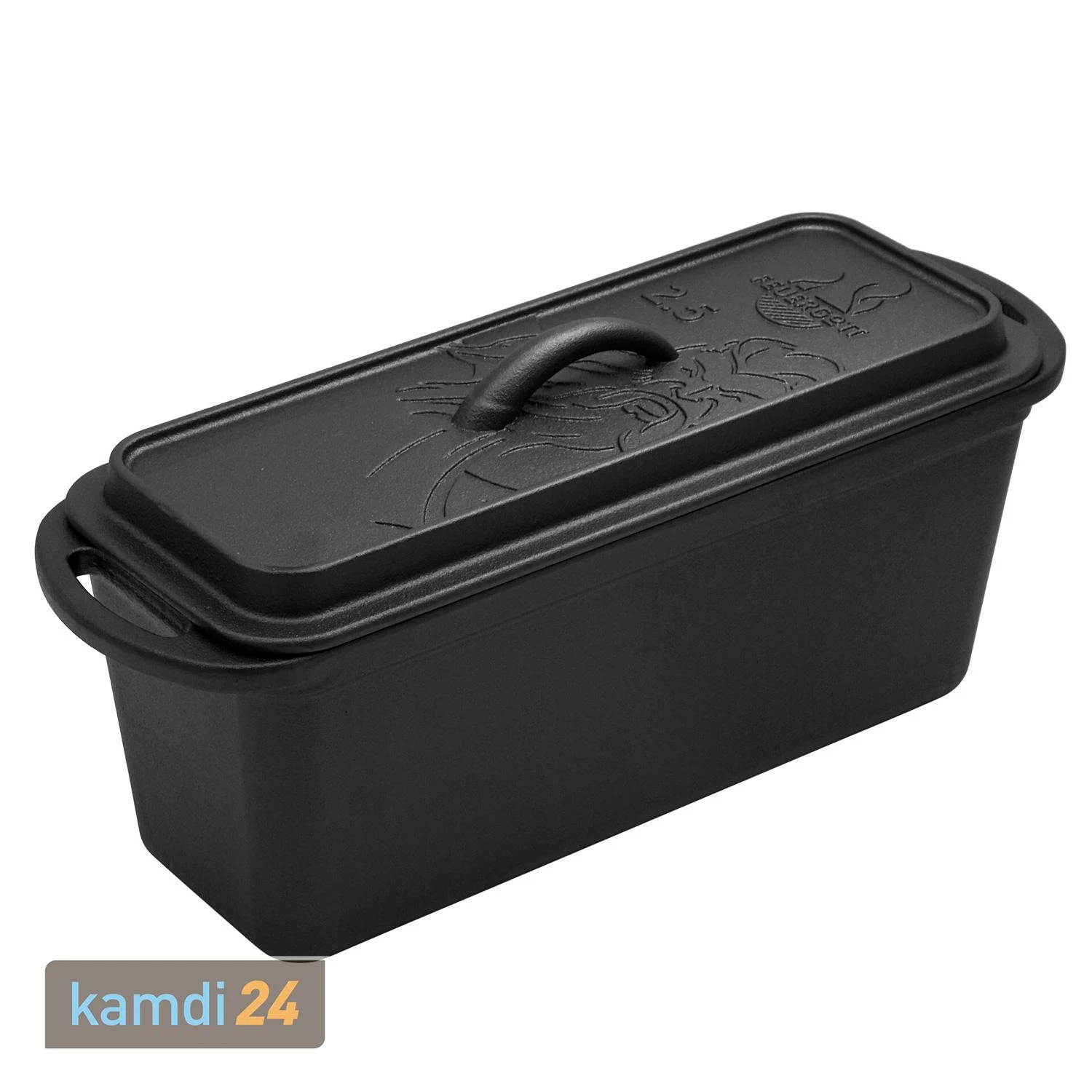 Die Kastenform eignet sich nicht nur zur Zubereitung von Backwaren. Sie können darin nahezu alle denkbaren Gerichte kochen, braten oder backen. Der dicht schließende Deckel ermöglicht einen Backofen- und Schnellkochtopf-Effekt, wenn Sie darauf glühende Kohlen platzieren. Die gleichmäßige Wärmeverteilung in den massiven Gusseisen-Wänden sorgt für kurze Garzeiten.