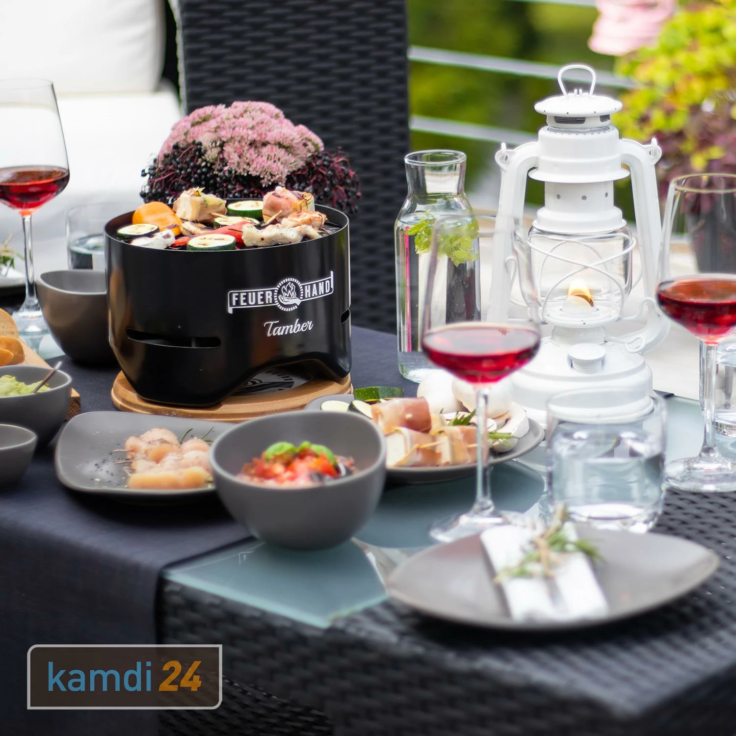 Mit einer Füllung ist der Tamber in 15 bis 20 Minuten betriebsbereit und Sie können bis zu 1,5 Stunden grillen. Der Tamber lässt sich nach dem Grillen leicht auseinandernehmen und reinigen. An dem emaillierten Grillrost haften keine Speisen an. Er ist zudem spülmaschinengeeignet. Nach dem Grillen bietet der Tamber-Deckel die passgenaue Stellfläche für die , die Sie zusätzlich erwerben können, und am späten Abend Ihren Tisch erhellt.