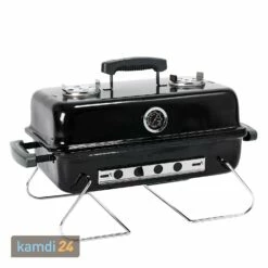 Zum Aufstellen des klappen Sie einfach die nach unten und schon hat er einen festen Stand. Die beugt Rost und Verfärbungen am Gerät vor. Die Griffe an der Seite des Grills bleiben immer angenhehm kühl, sodass Sie diesen auch während des Grillvorgangs umstellen können.