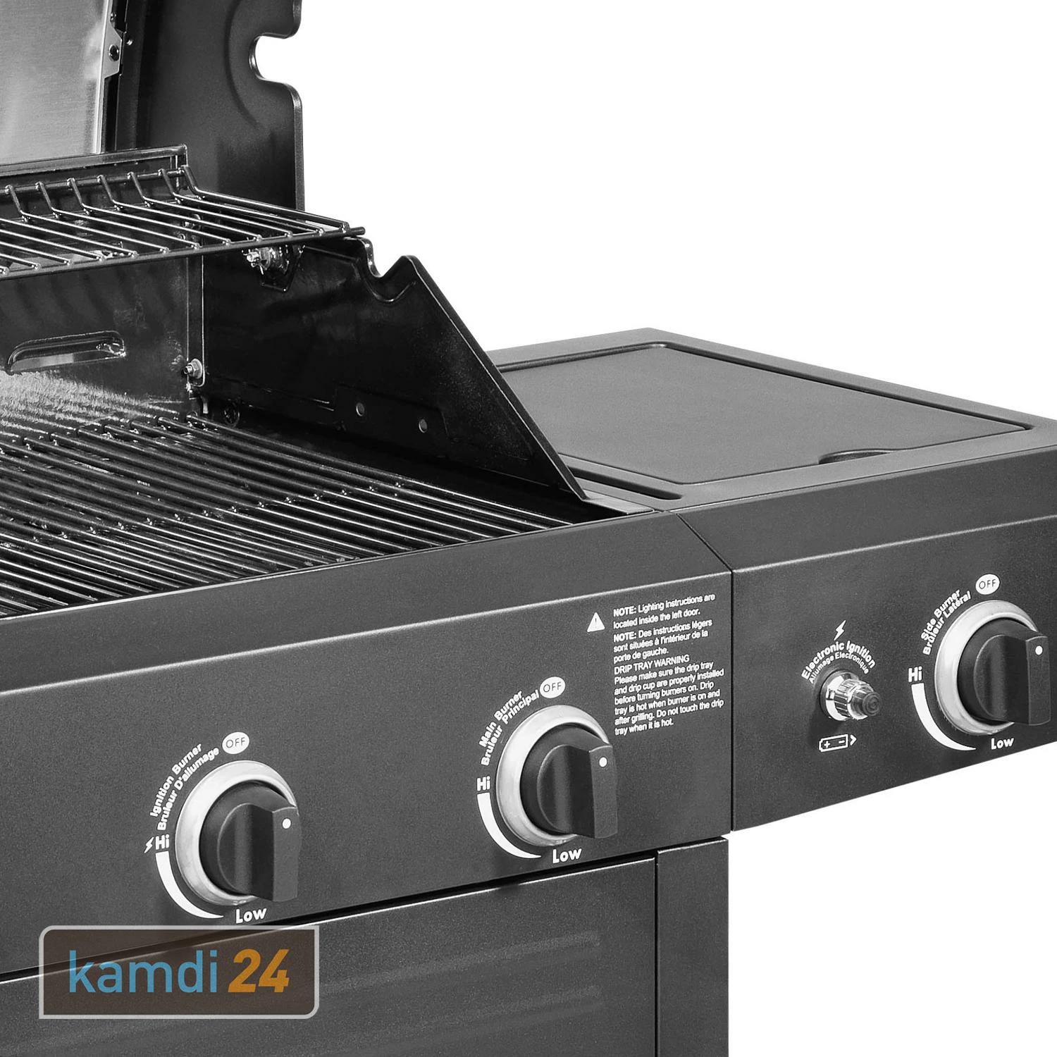 Der kompakte von macht Sie fit für die Grillsaison. à 3,5 kW und mit 3,8 kW Leistung sorgen für langanhaltendes Grillvergnügen mit zahlreichen Möglichkeiten. Der Seitenbrenner kann zur Zubereitung von Beilagen im Topf oder im Wok genutzt werden. Auf der hat jede Menge Grillgut, egal, ob Fleisch, Fisch oder Gemüse, Platz. Die sorgen dabei für ein aromatisches Branding und punkten mit ihrer hervorragenden Wärmeleitfähigkeit. Auf dem integrierten können Sie fertig Gegrilltes bis zum Servieren heiß halten.