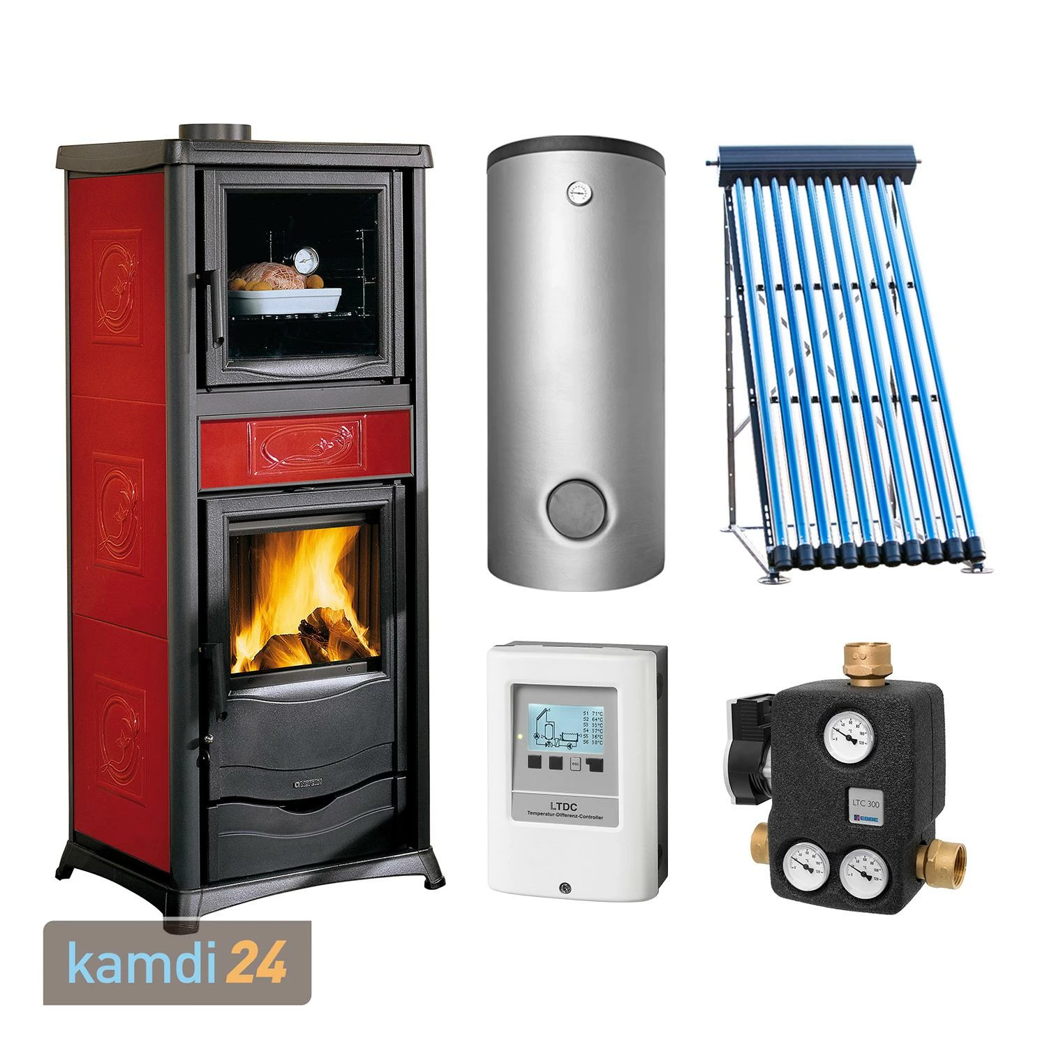 Mit dem Kaminofen von erhalten Sie viele Vorteile mit nur einem Gerät. Sie können den mit 3,1 kW erwärmen und durch den Anschluss an die mit weiteren 8 kW sogar das ganze Haus heizen. Außerdem besitzt der Holzofen neben einem großen Brennraum auch ein geräumiges Backfach für die Zubereitung von Braten, Auflauf oder Kuchen. Beide Türen sind mit Keramikglas, das Backfach zusätzlich mit einem Thermometer und der Brennraum mit einer Scheibenspülung versehen. Ein herausziehbares Asche- und Holzfach im unteren Bereich des Ofens runden die Ausstattung ab.