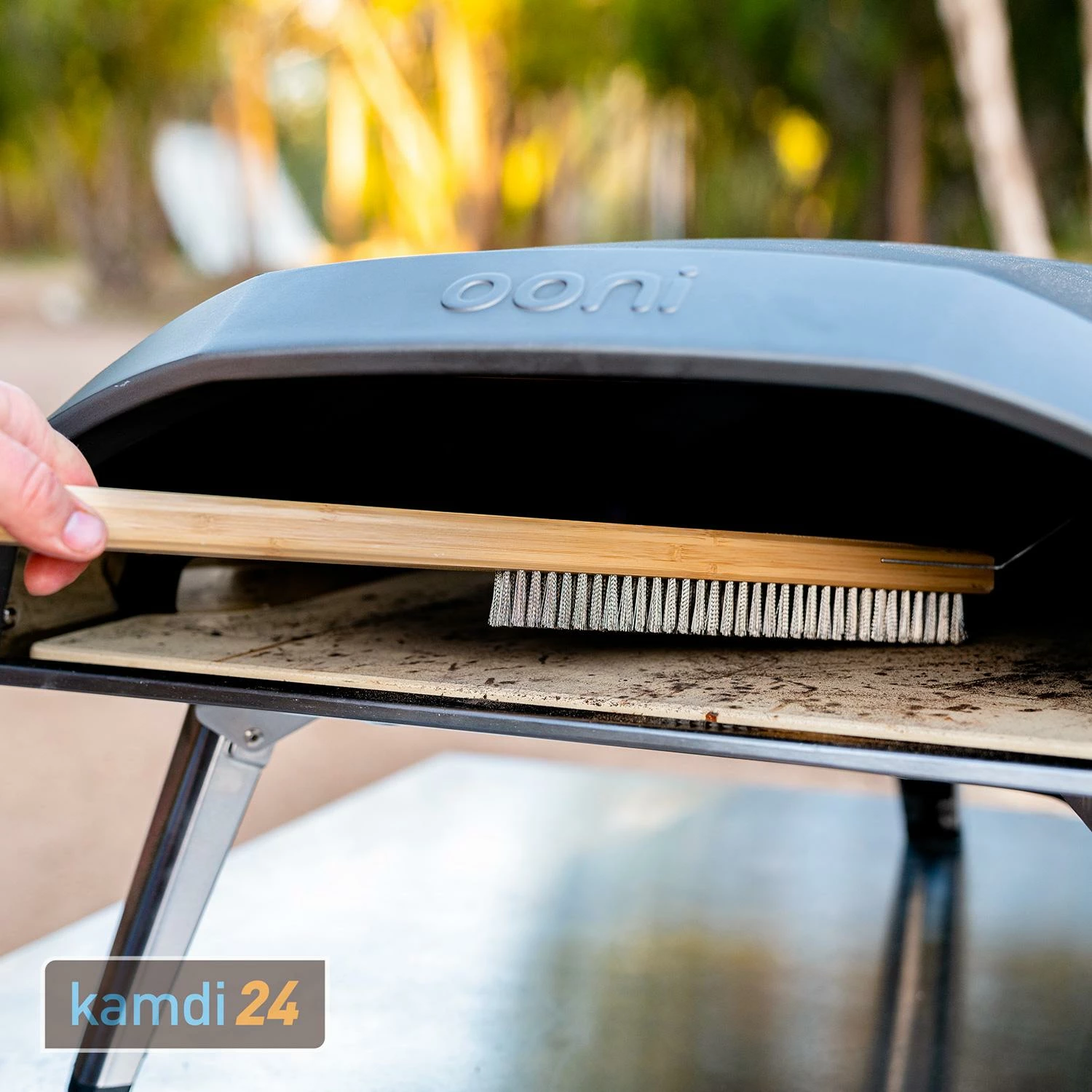 Mit der von aus unserem erhalten Sie ein nützliches Hilfsmittel für die Ihres Pizzaofens. Mit dem befreien Sie den Pizzastein von Pizzaresten. Die dient zum Entfernen von überschüssigem Mehl. Der liegt gut in der Hand. Die Schabfläche sowie die Borsten bestehen aus und sind besonders strapazierfähig.