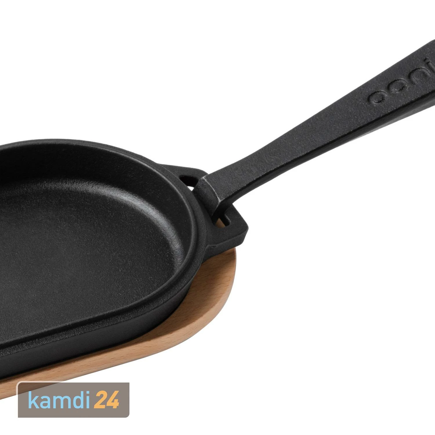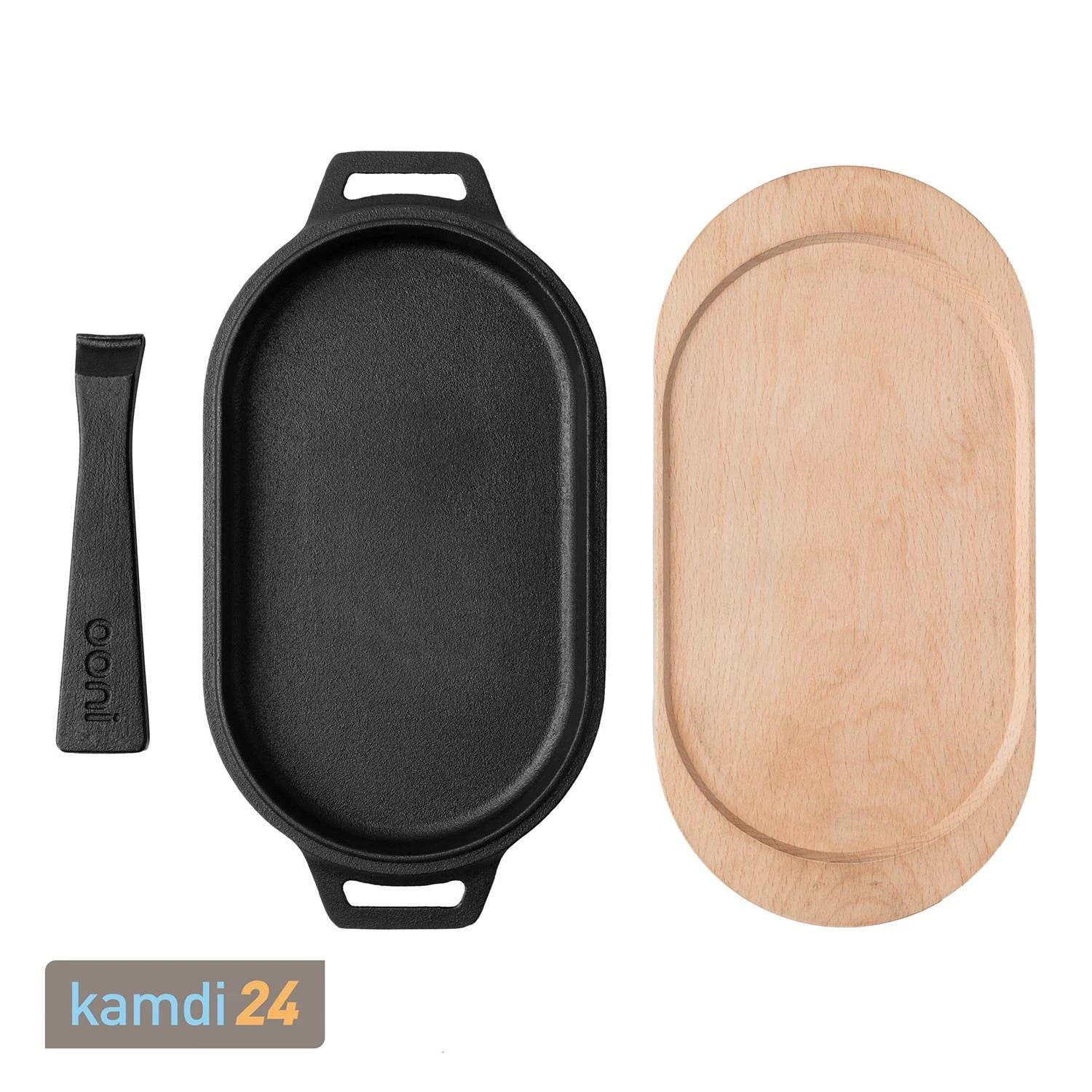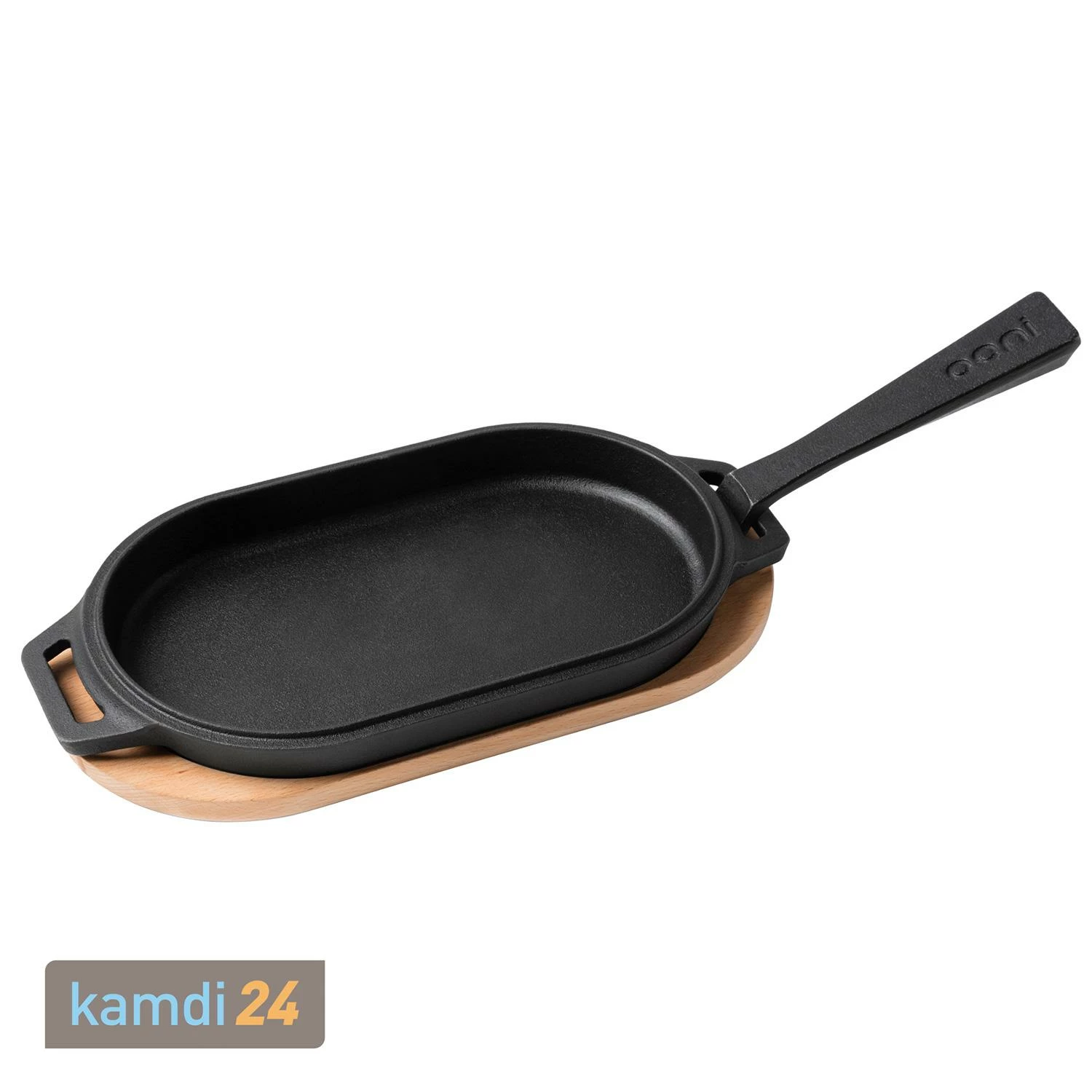 Mit der von aus unserem können Sie empfindliche Lebensmittel wie Fisch, Meeresfrüchte und Gemüse in Ihrem Ooni Pizzaofen braten. Auch kleine Fleischstücke lassen sich darin zubereiten. Besonders praktisch ist der . Mit diesem können Sie die im Ofen platzieren und ohne Angst vor Verbrennungen wieder entnehmen. Zum Abstellen und Servieren der Pfanne dient der Untersetzter aus Holz.