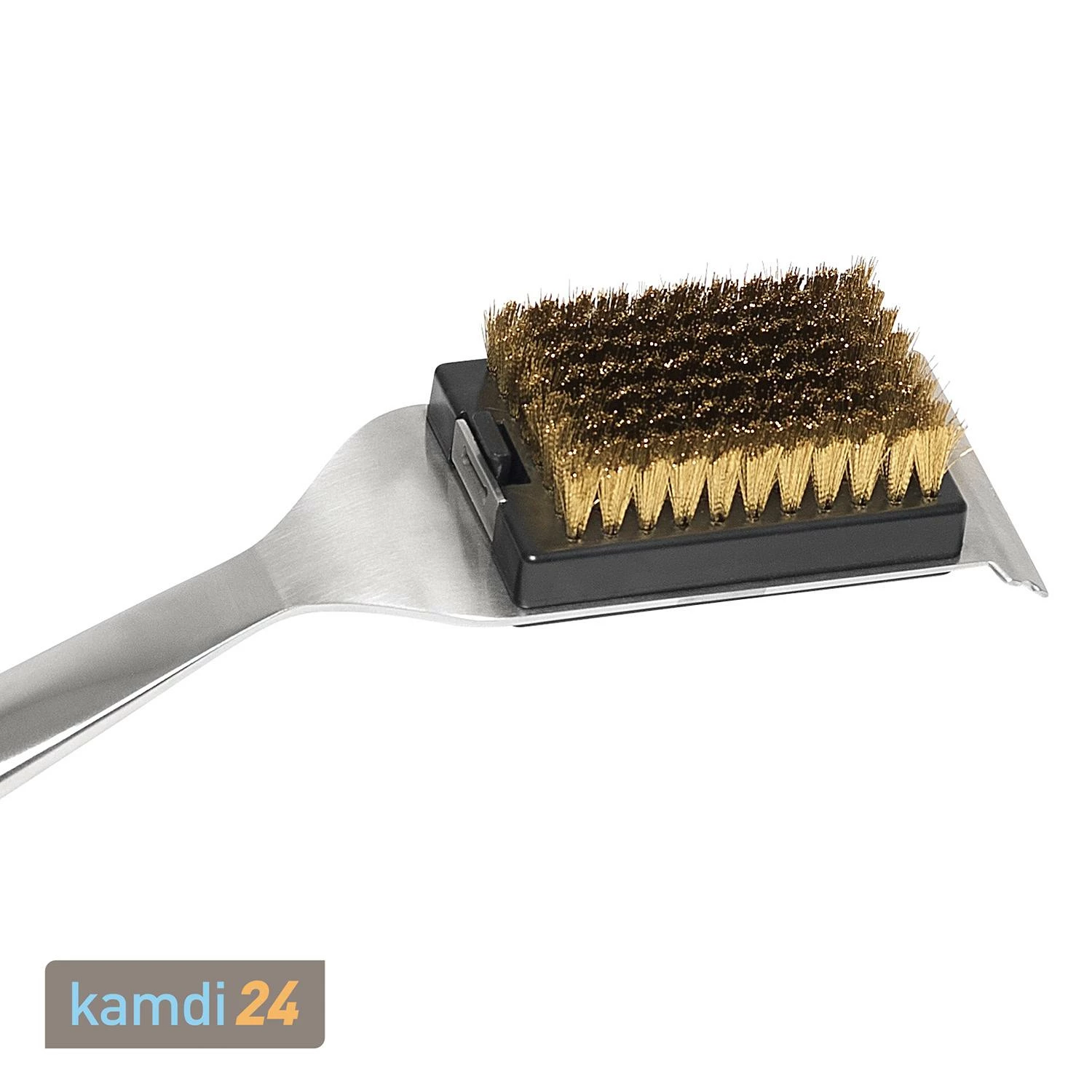 Mit der von geht es dem Schmutz an den Kragen. Dank der doppelten Anzahl an Messingborsten und dem zusätzlichen Schaber am Bürstenkopf gehören hartnäckige Verkrustungen der Vergangenheit an. Sind die Borsten einmal abgenutzt, kann der Bürstenkopf mit einem Klick gelöst und in unserem Shop neue Ersatzköpfe bestellt werden: