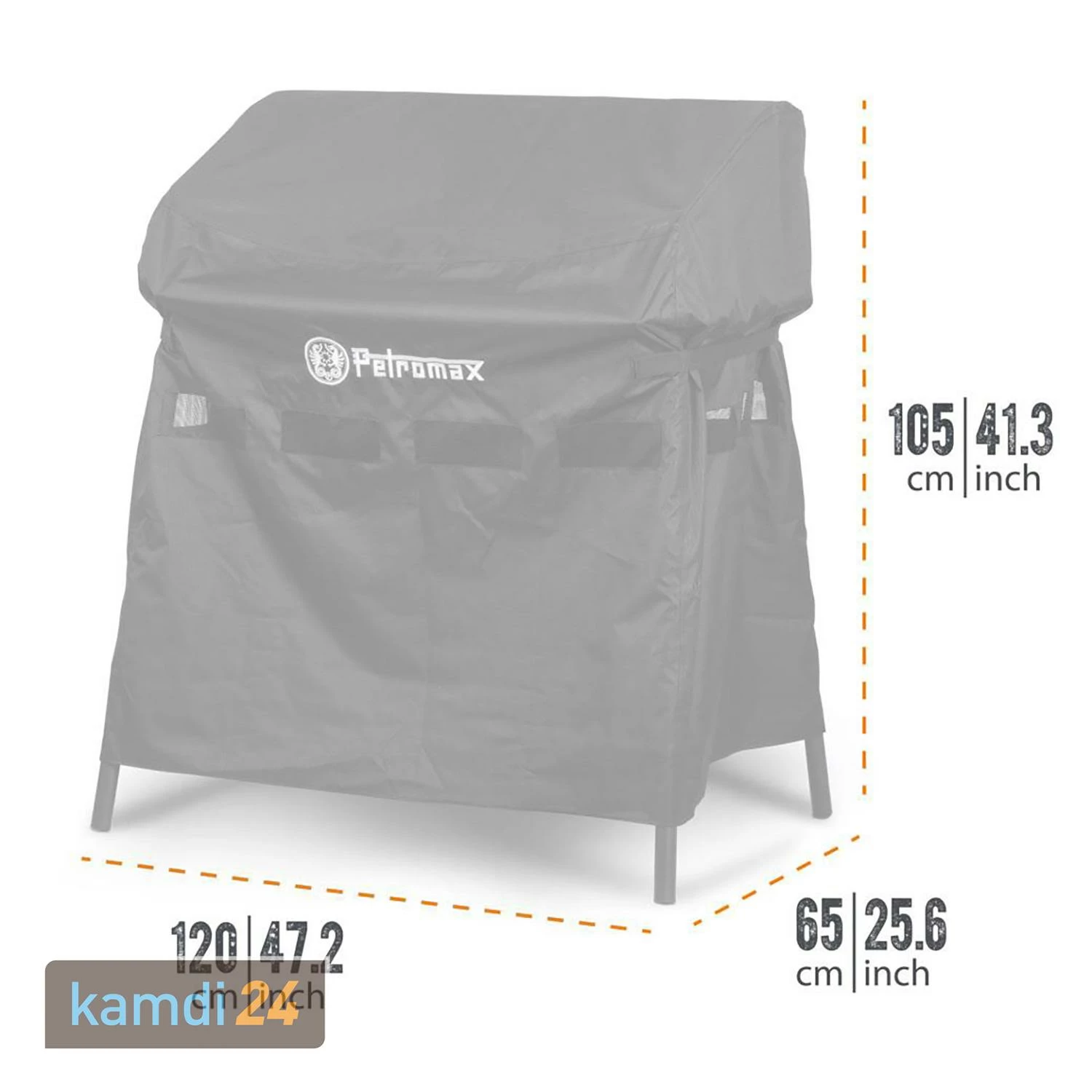 Dank mehrerer bietet die Schutzhülle einen starken Halt und ist selbst bei windigem Wetter sicher am Tisch fixiert. Zusätzlich sind Bänder angebracht, mit denen Sie die Abdeckung festziehen können, um ein Verrutschen zu verhindern. Die Petromax-Abdeckhaube können Sie auf Ihrem Feuertopf-Tisch sowohl mit als auch ohne aufgeschraubten Windschutz verwenden. Bei Bedarf ist die schwarze Abdeckhaube mit Spülmittel und einem feuchten Tuch einfach zu reinigen.