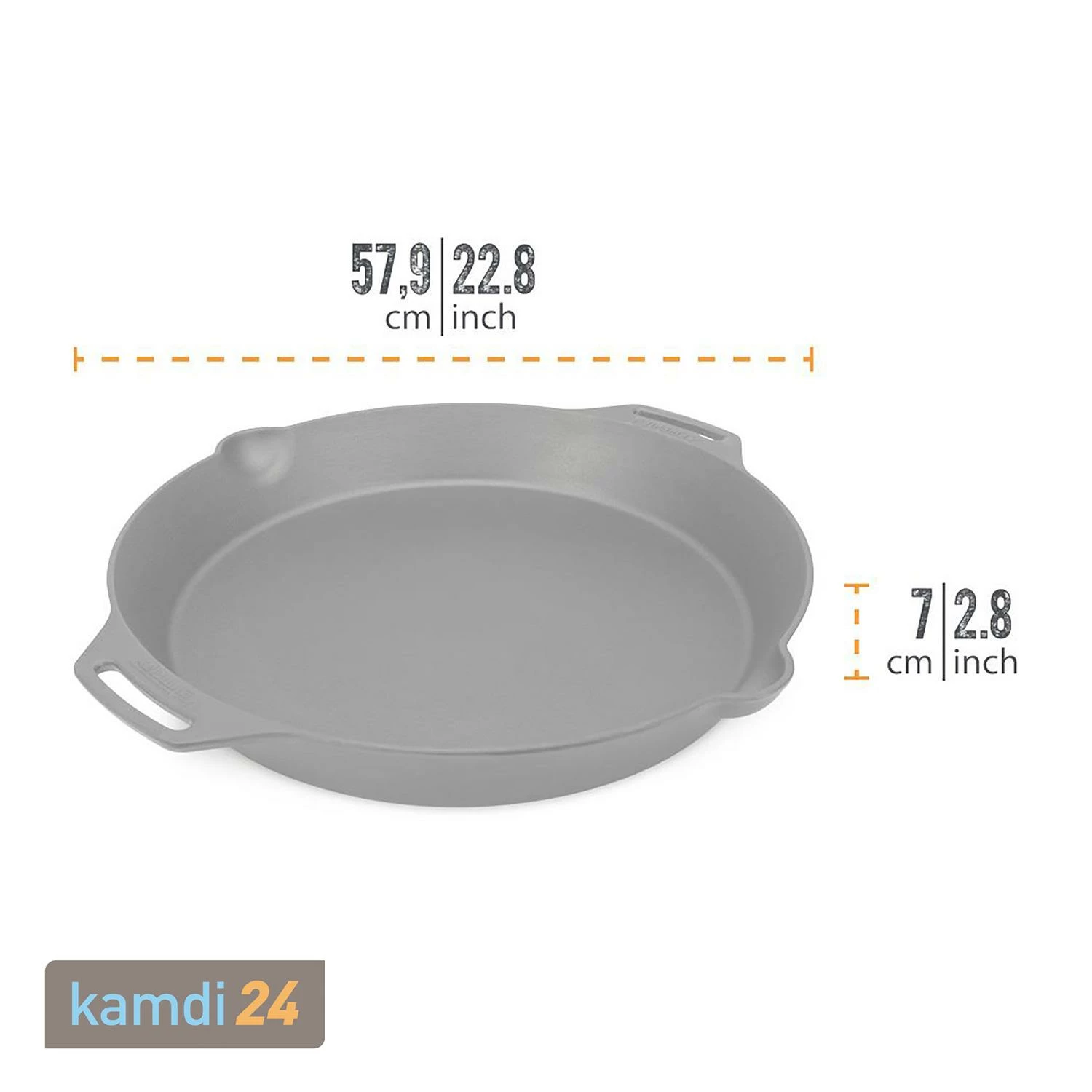 Die ist mit zwei Henkeln versehen und fasst ca. . Sie ist die größte Version der Petromax-Feuerpfannen und hervorragend auch zum Bekochen einer größeren Runde geeignet.