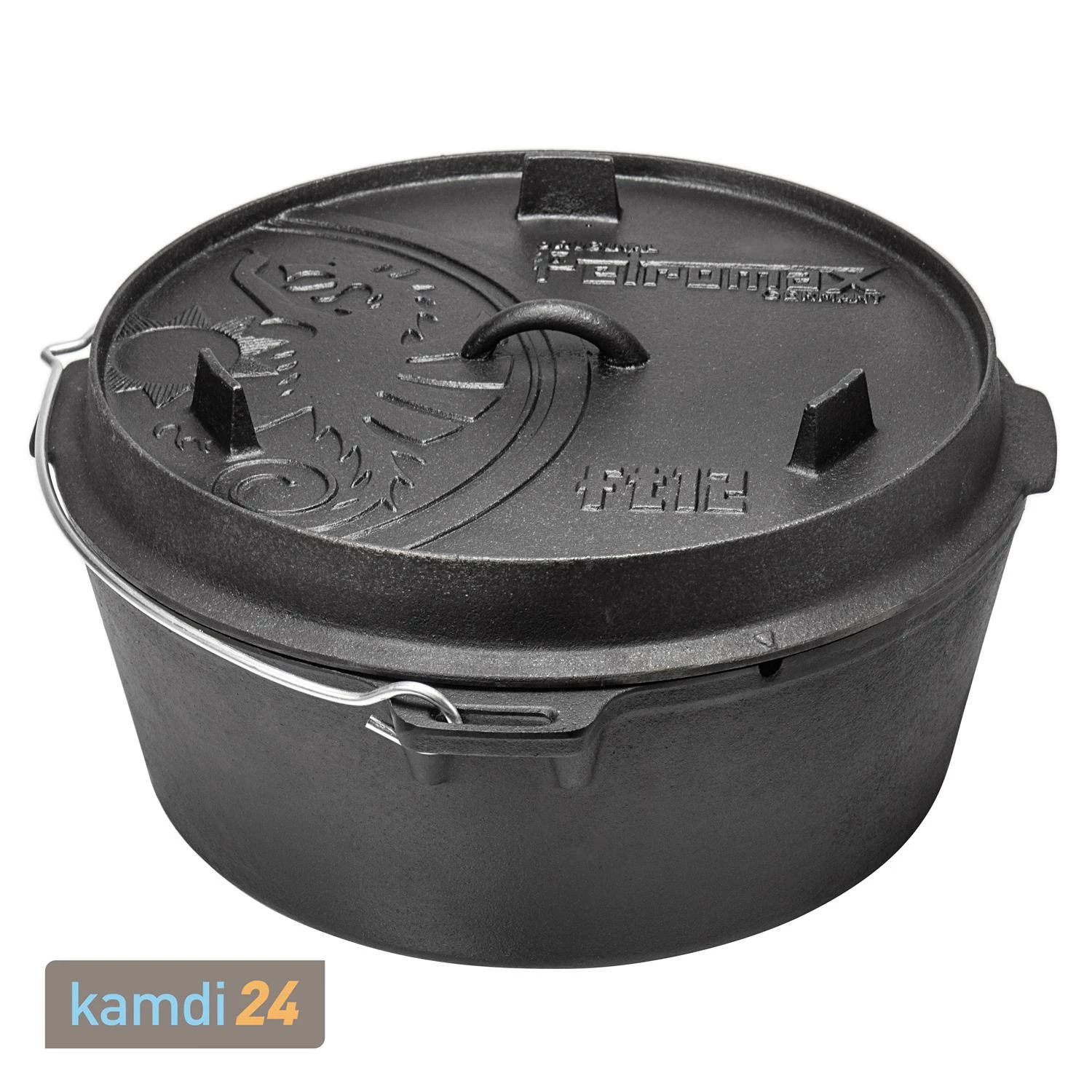 Mit diesem werden bestimmt alle satt: Der von Petromax fasst und ist somit für geeignet. Braten, Rippchen, Schichtfleisch, Eintöpfe oder Schmorgerichte – nichts ist unmöglich mit diesem großen Feuertopf. Der Deckel kann auf seinen drei Füßen als genutzt werden.