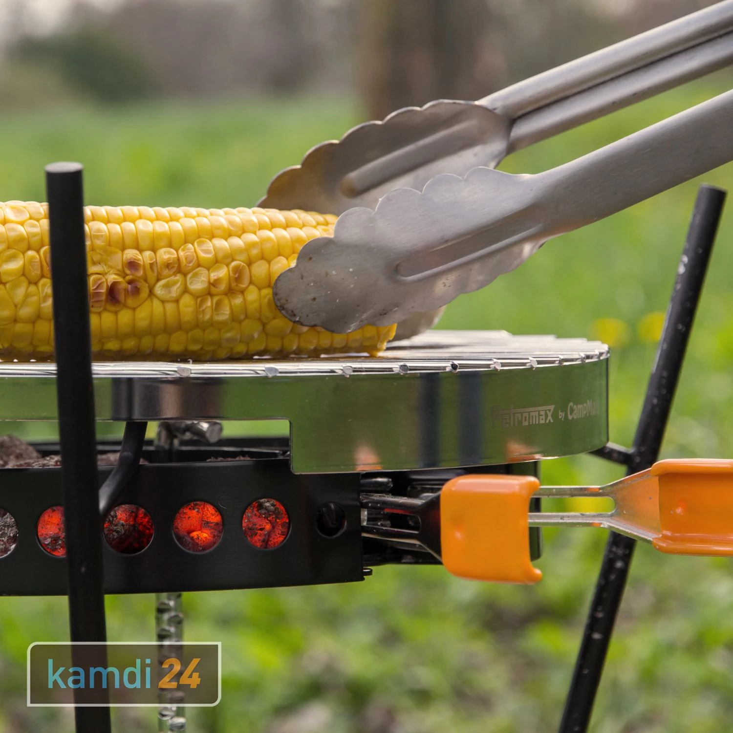 Dank ihres praktischen Verschlussmechanismus lässt sich die Grillzange , indem Sie sie beispielsweise an ihrer Edelstahl-Öse aufhängen.