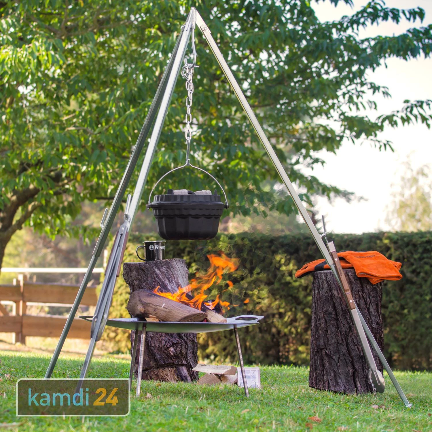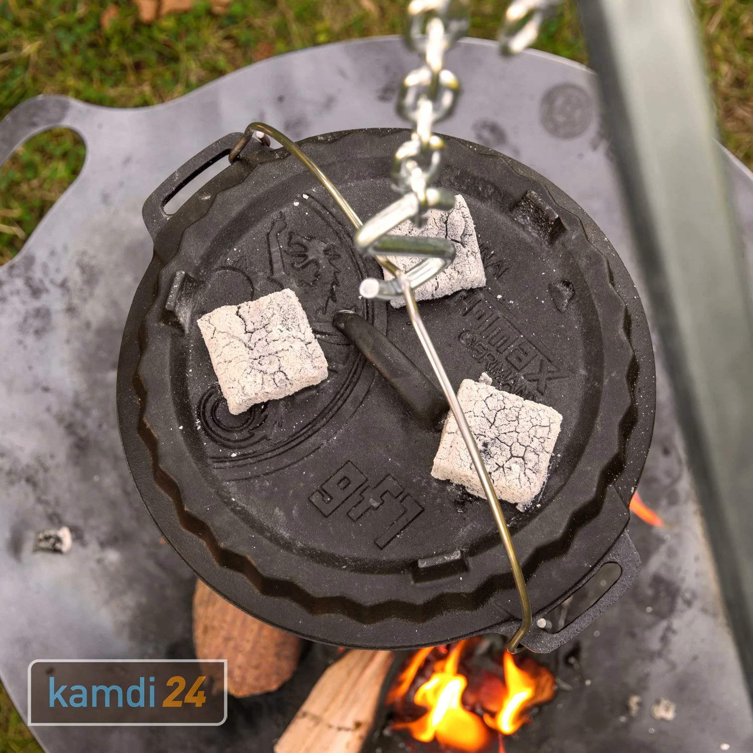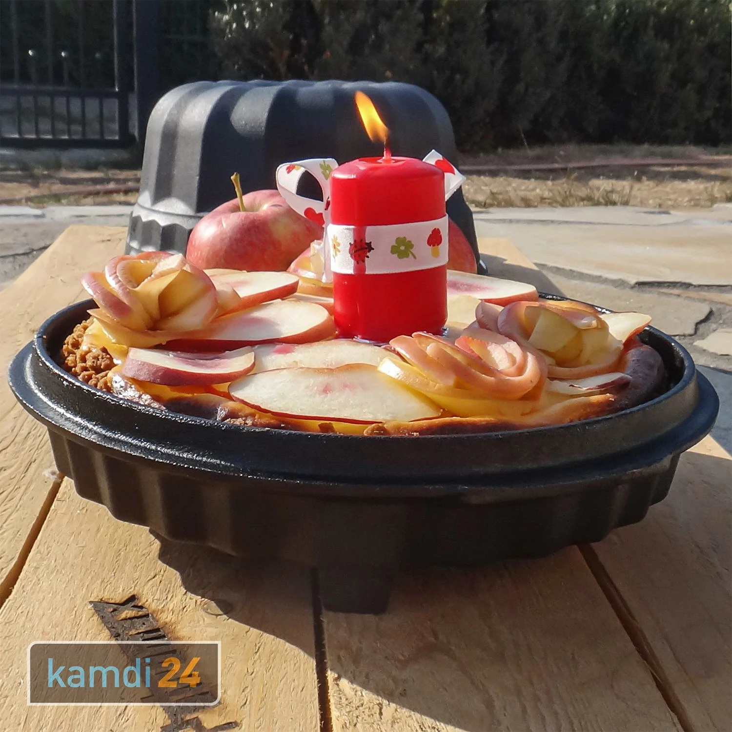 Die von sorgt für Backspaß am Lagerfeuer. In der können Sie leckere Kuchen, aber auch saftige Aufläufe oder Brot in Kranzform backen. Die exzellente Wärmeleitfähigkeit des Gusseisens sorgt für ein gleichmäßiges Backergebnis über dem Feuer oder auf glühenden Kohlen. Wenn Sie auch auf dem Deckel platzieren, erreichen Sie einen Rundumwärme-Effekt wie in einem Umluft-Backofen. Darüber hinaus lässt sich die Gugelhupfform natürlich auch zu Hause im Ofen wie eine normale Kuchenform verwenden.