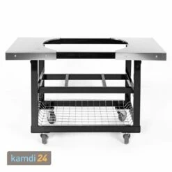 Der stabile und langlebige bringt Ihren auf eine angenehme Arbeitshöhe. Er bietet zwei große und eine praktische unter dem Grill, beispielsweise zur Lagerung von Holzkohle. Dank der robusten können Sie den Wagen mühelos dort platzieren, wo er gebraucht wird. Mit gesichert, bleibt er am gewünschten Ort dann sicher stehen.