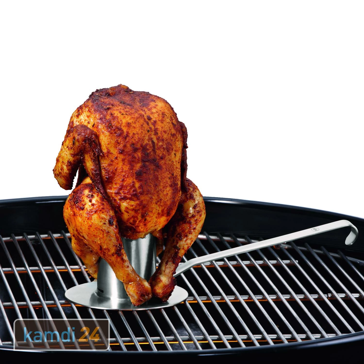 Ein rundherum knuspriges Hähnchen grillen Sie am besten mit dem . Angelehnt an die Bierdosenmethode können Sie den Bräter mit 250 ml Bier, Marinade oder anderen Flüssigkeiten zur Aromatisierung des Geflügels füllen. Der Griff ist leicht abnehmbar und lässt sich an vier verschiedenen Positionen einstecken.