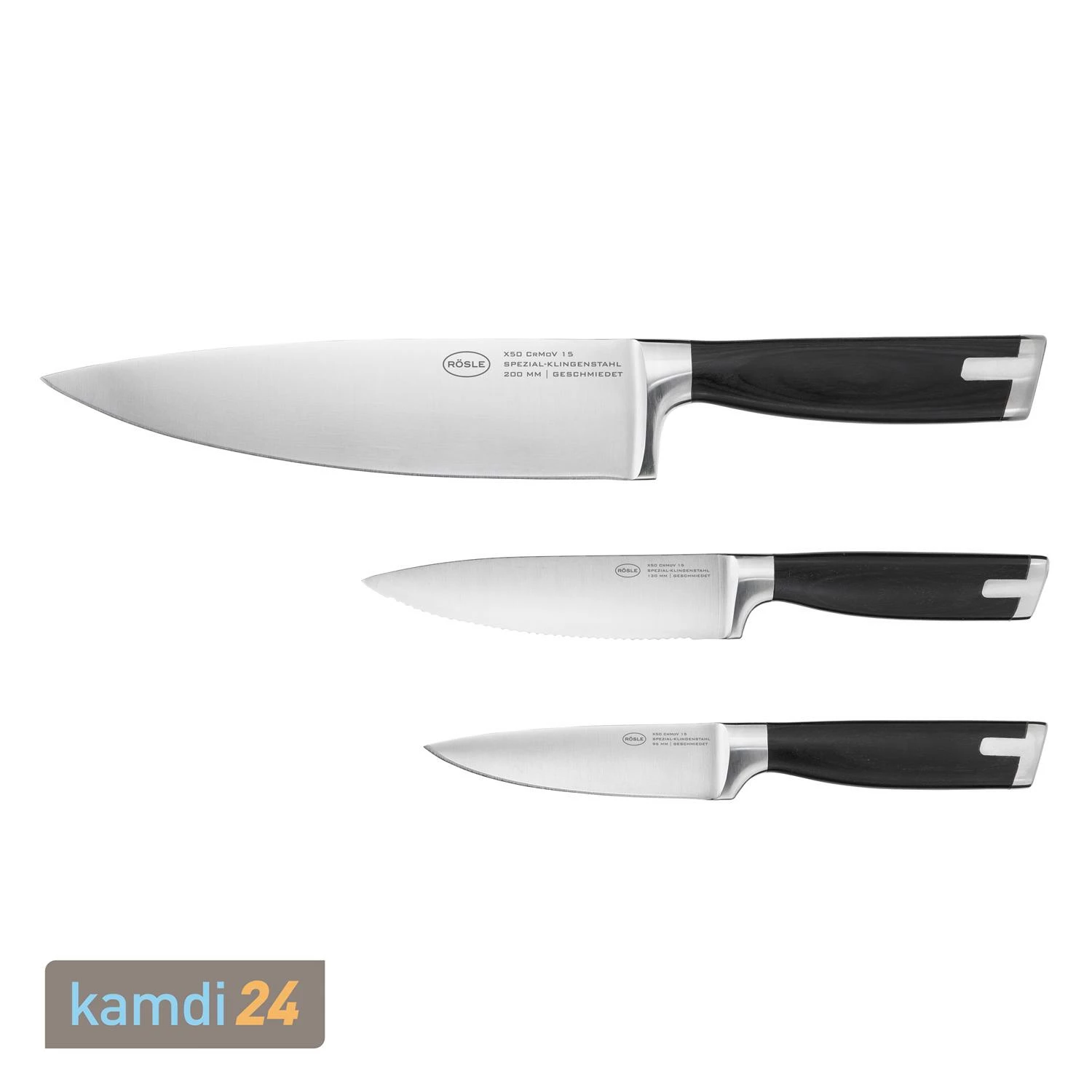 Das von enthält drei hochwertige RÖSLE-Messer, mit denen Sie für alle Küchenarbeiten ausgestattet sind: Das mit Wellenschliff, das kleineund das mit breiter Klinge zum Schneiden, Hacken und Wiegen von zahlreichen Zutaten. Alle verfügen über einen im klassischen Design. Wir empfehlen die Messer per Hand zu reinigen.