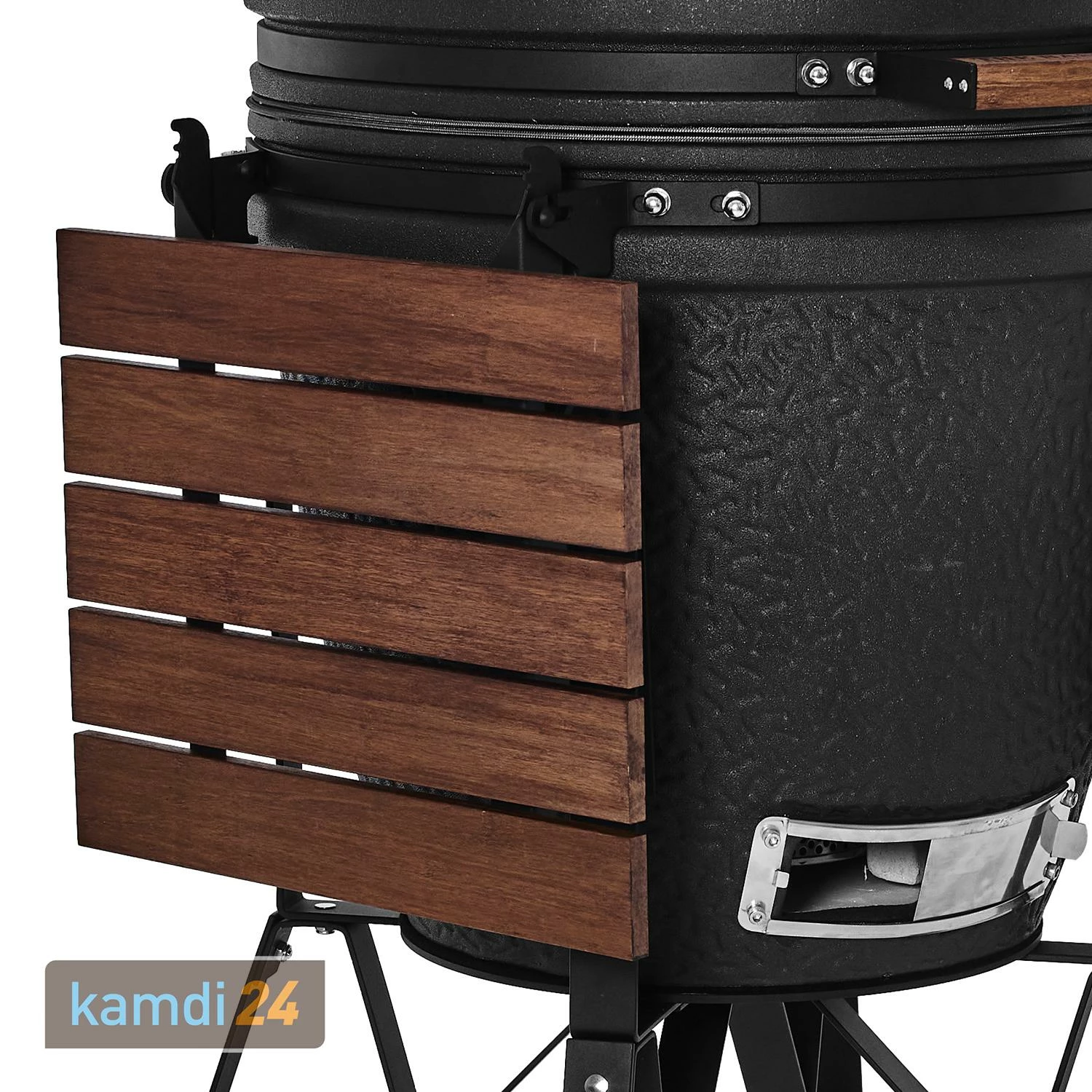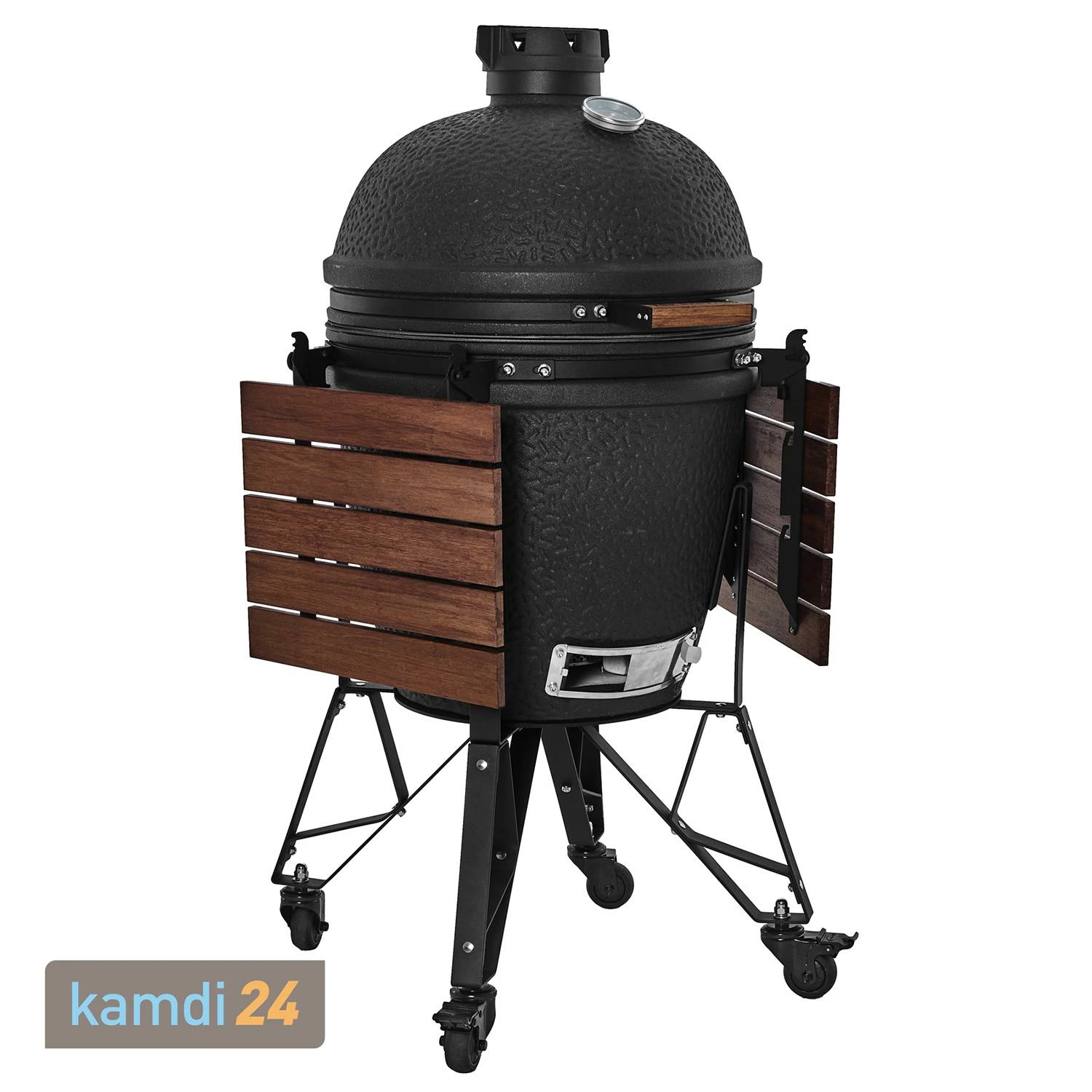 Das aus 4 mm starkem, pulverbeschichtetem Stahl bestehende Gestell des Keramikgrills eignet sich für den Einsatz zu jeder Jahreszeit.