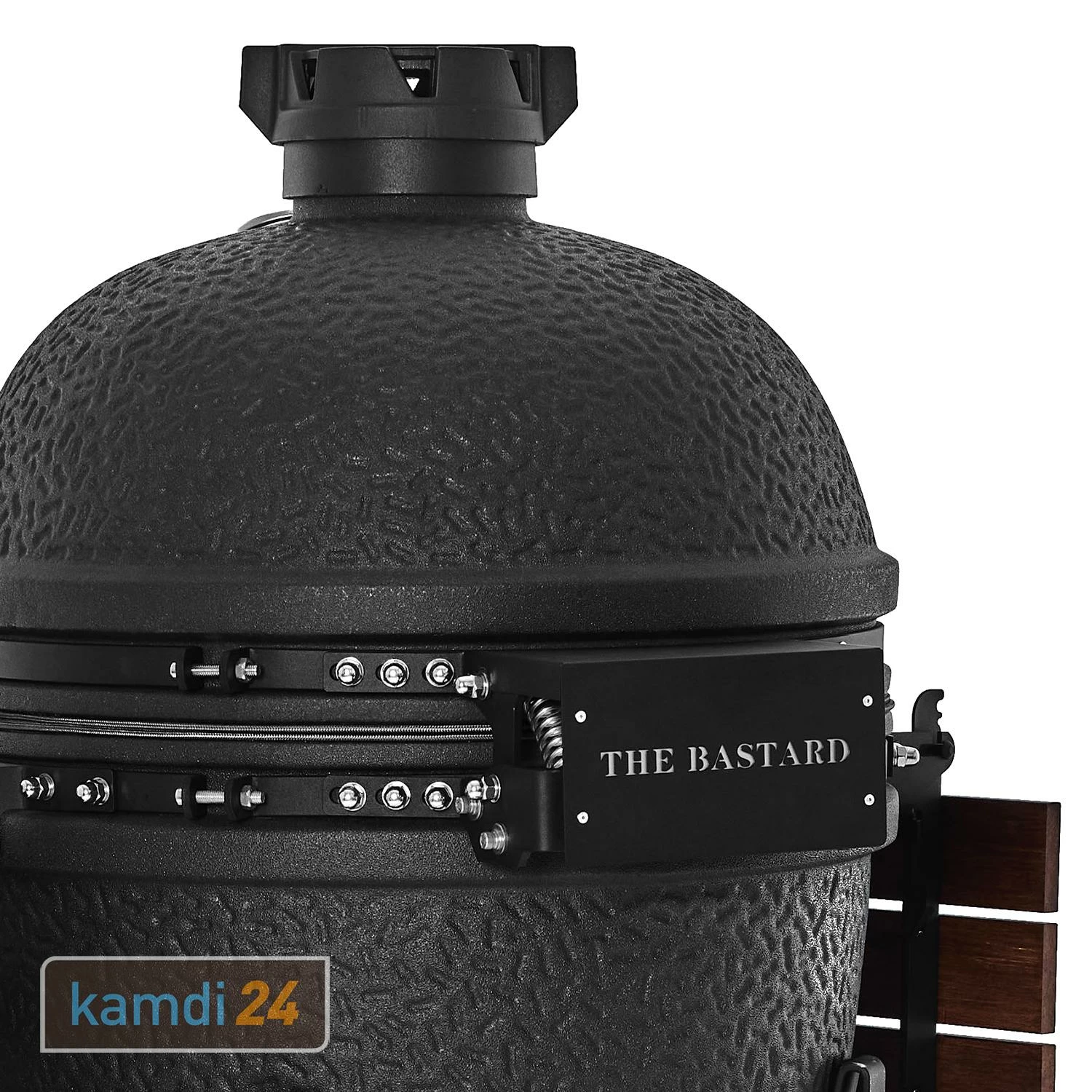 Der Kamado von The Bastard ist mit hochwertigen Seitentischen aus Bambus-Holz ausgestattet. Diese bieten die Möglichkeit Grillzubehör wie Gewürze, Grillbesteck oder Geschirr bequem abzustellen. Werden die Seitentische nicht benötigt, können diese ganz einfach zugeklappt werden. Dank dem verbesserten Tischscharnier wird zudem das Klappern der Tischplatte verhindert.