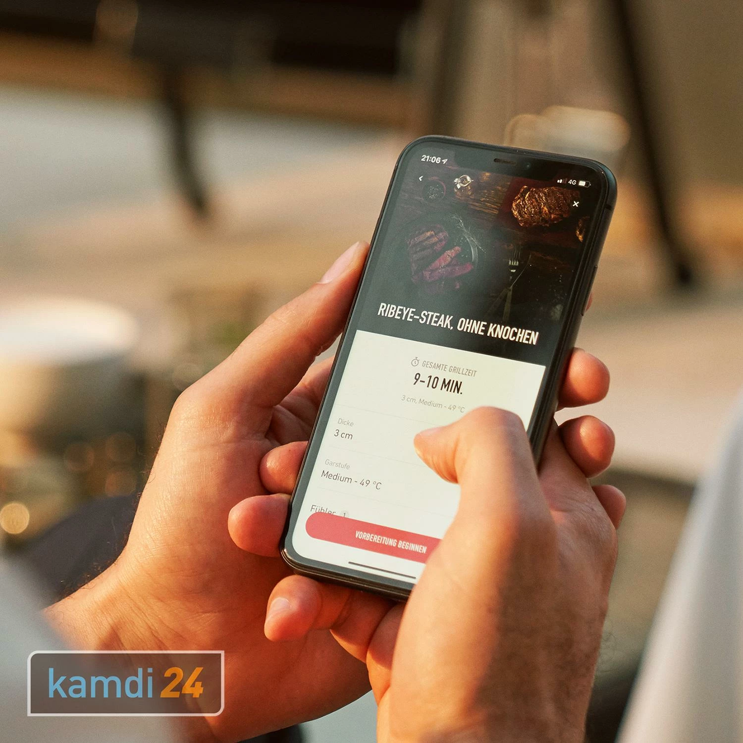 Weber Connect liefert dir voreinstellbare Grillprogramme, Timer-Einstellungen, Schritt-für-Schritt-Anleitungen vom Wenden bis zum Servieren und vieles mehr. Die Benachrichtigungen werden direkt an den Grill oder dein Smartphone gesendet. Mit der Weber Connect App verbindest du dein Smartphone über WLAN oder Bluetooth mit dem Grill, sodass du diesen auch aus der Ferne komfortabel steuern kannst.